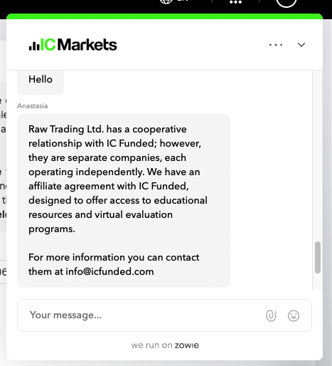 “Raw Trading Ltd. has a cooperative relationship with IC Funded; however, they are separate companies, each operating independently. We have an affiliate agreement with IC Funded, designed to offer access to educational resources and virtual evaluation programs.”